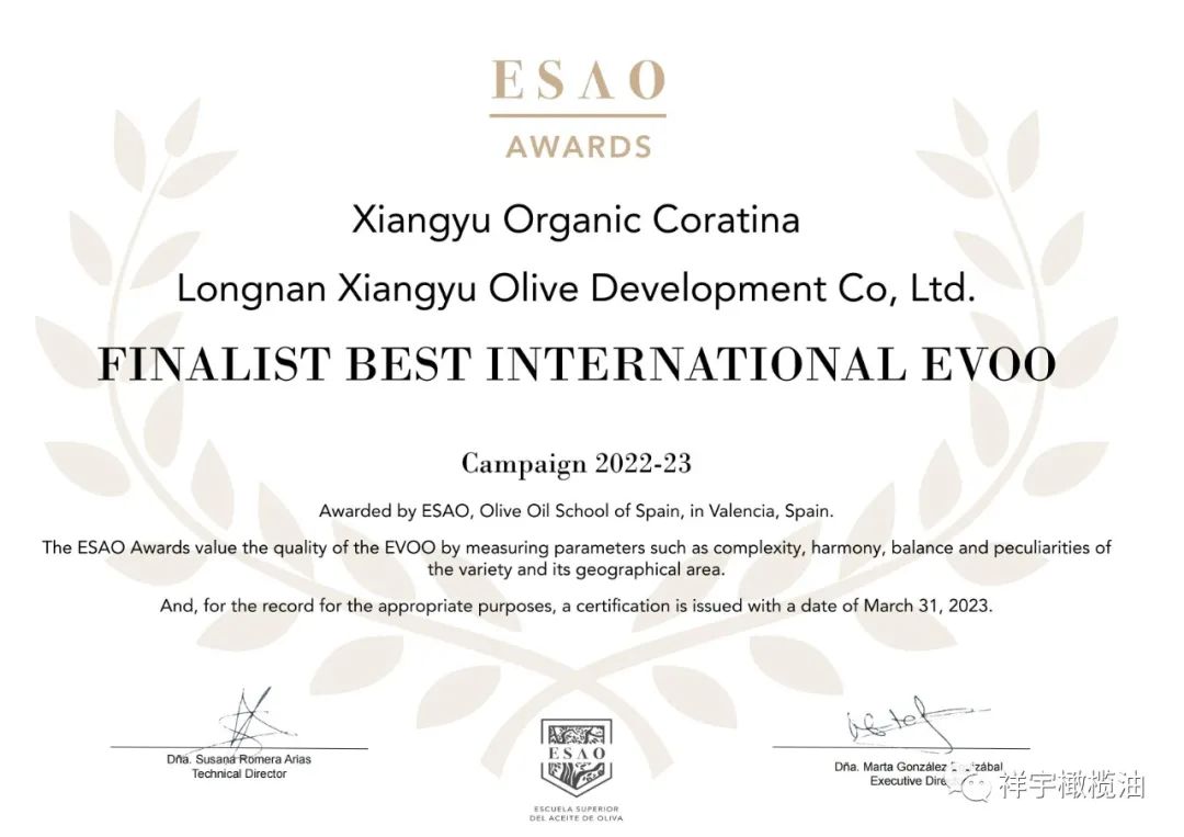 ESAO獎(jiǎng)是國(guó)際公認(rèn)的橄欖油高等學(xué)校的官方獎(jiǎng)項(xiàng),
